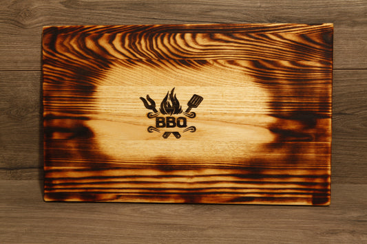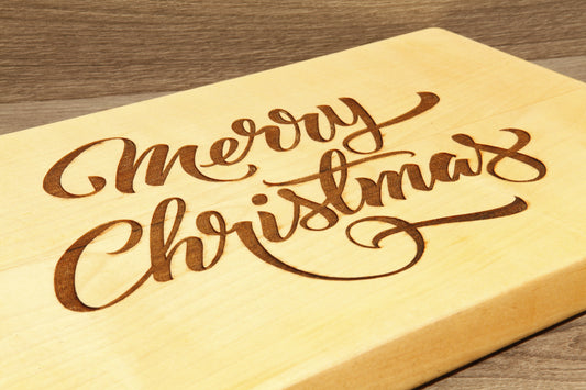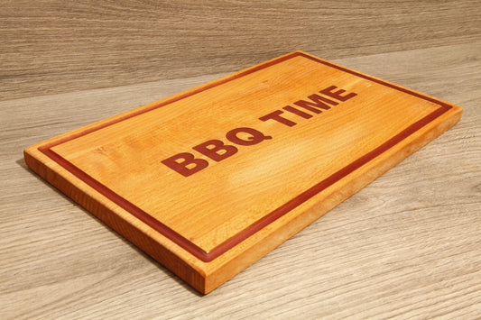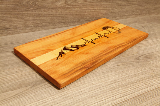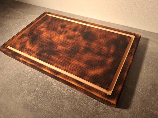 Schneidebrett aus Elsbeeren- und Ahornholz mit Gravur
