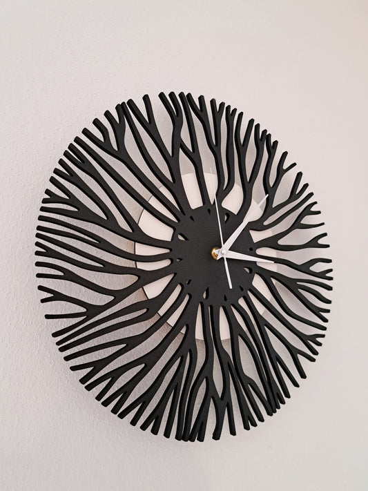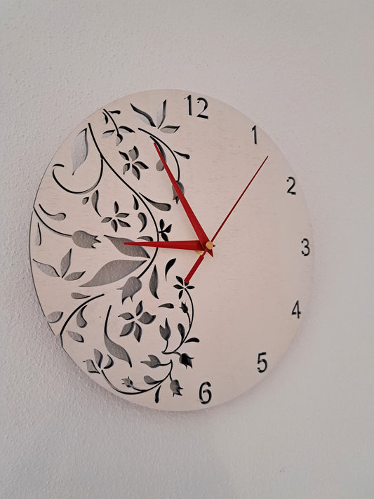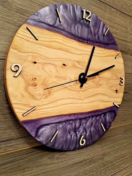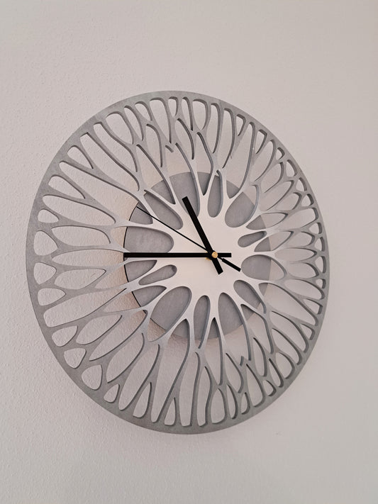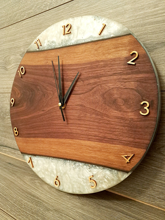 Wanduhr aus Walnussholz und weißem Epoxidharz